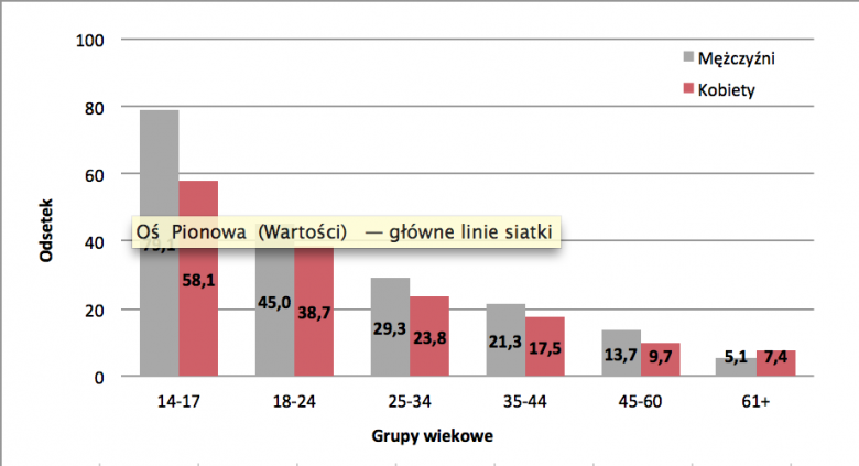 Podstawową drogą zakażenia HIV są kontakty seksualne. Wbrew stereotypowym przekonaniom osoby w wieku 50+ potrafią być w tej sferze równie aktywne, co ludzie młodzi. Wiele osób po 50-tce niedawno straciło partnera albo zdecydowało się na rozwód. Często zawierają nowe znajomości i wchodzą w nowe relacje, również o charakterze seksualnym. Nie mają jednak niezbędnej wiedzy na temat bezpiecznego seksu i nie zawsze są świadome, jak ważne jest regularne testowanie się i rozmowa z lekarzem. Z badań National Survey of Sexual Health and Behavior wynika, że single w wieku dojrzałym wykazują większą skłonność do nieodpowiedzialnych zachowań seksualnych niż osoby młodsze. Ponieważ nie muszą się już przejmować niechcianą ciążą, niechętnie używają prezerwatyw i nie postrzegają seksu bez zabezpieczenia jako zachowania ryzykownego. W efekcie, w grupie wiekowej 45-60 prezerwatywy stosowane są w zaledwie co 10 akcie seksualnym. Wśród osób powyżej 60 r.ż. odsetek ten jest jeszcze niższy (ryc. 1).